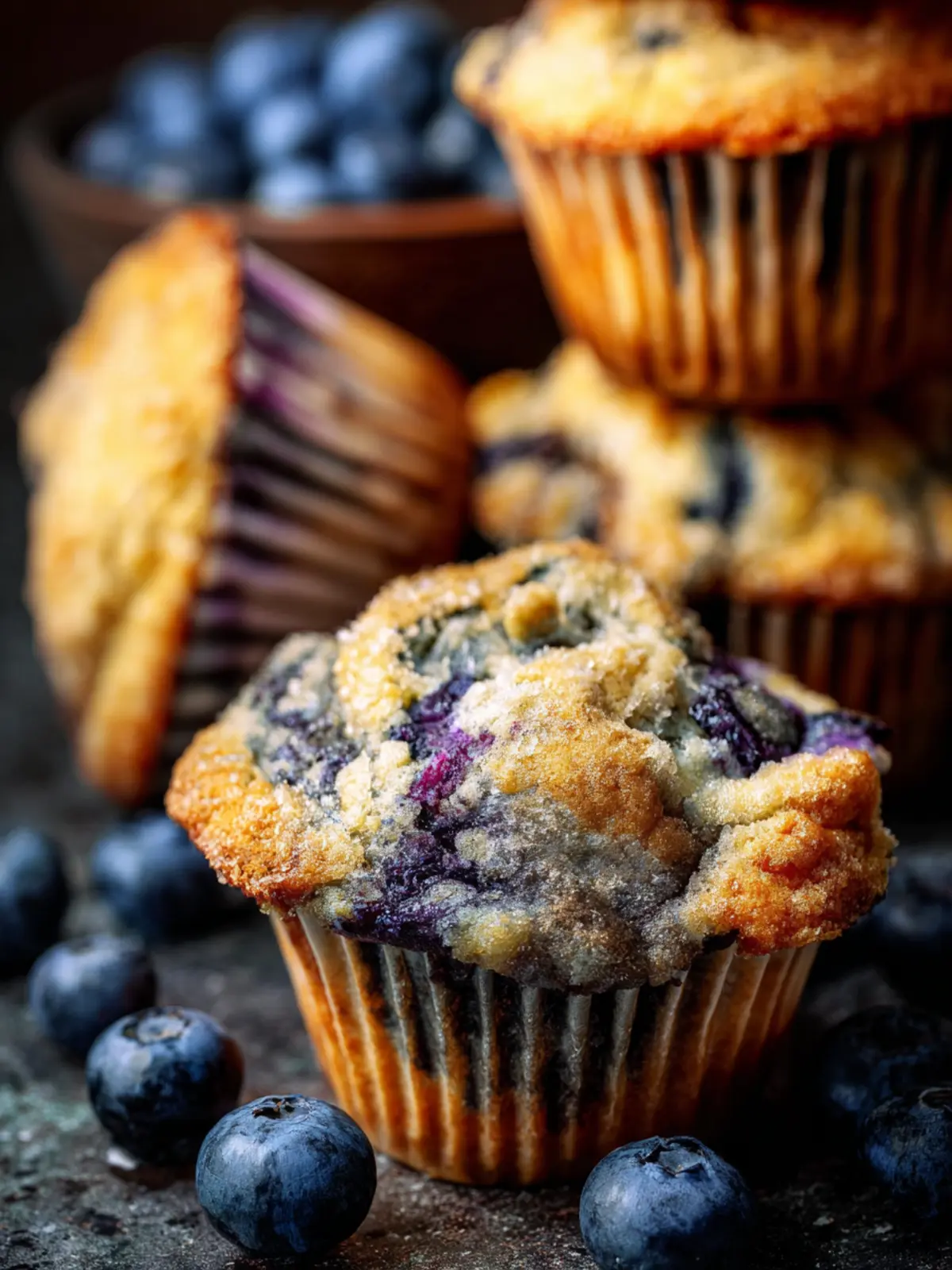 Delicious homemade blueberry muffins perfect for breakfast or a snack.