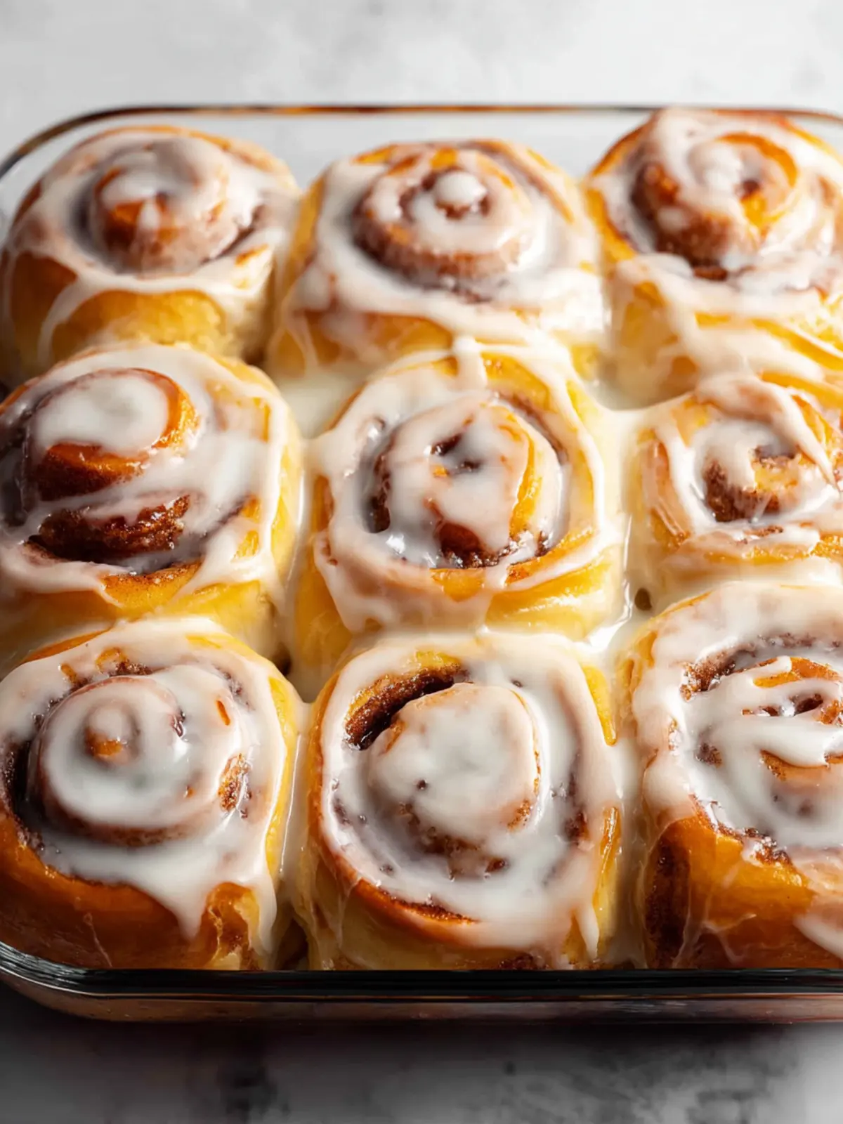 Delicious and soft cinnamon rolls topped with creamy icing.