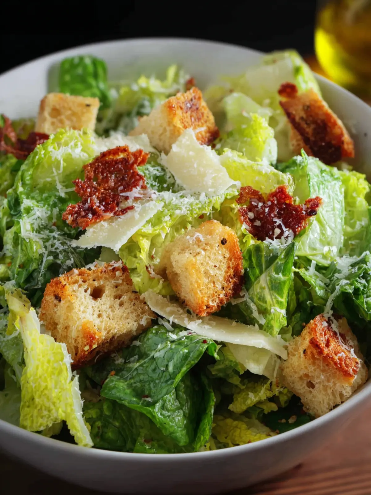 - Croutons: Homemade croutons are a must! Toss stale bread in olive oil and toast them until golden. They add a delightful crunch to your Caesar salad.