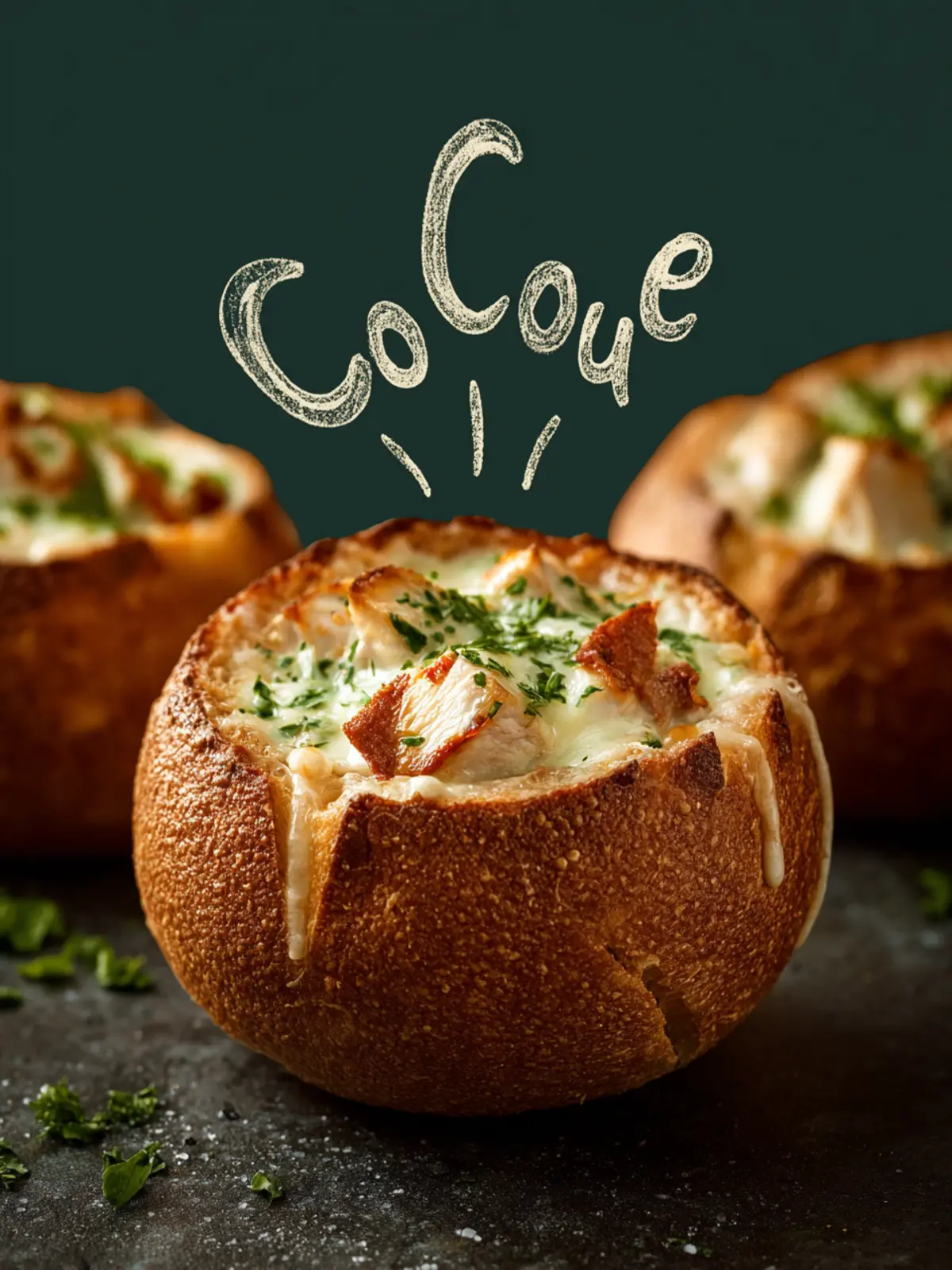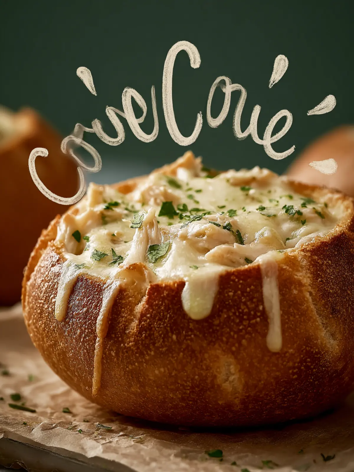 Chicken Alfredo in Garlic Bread Bowls: Irresistibly Creamy Delight