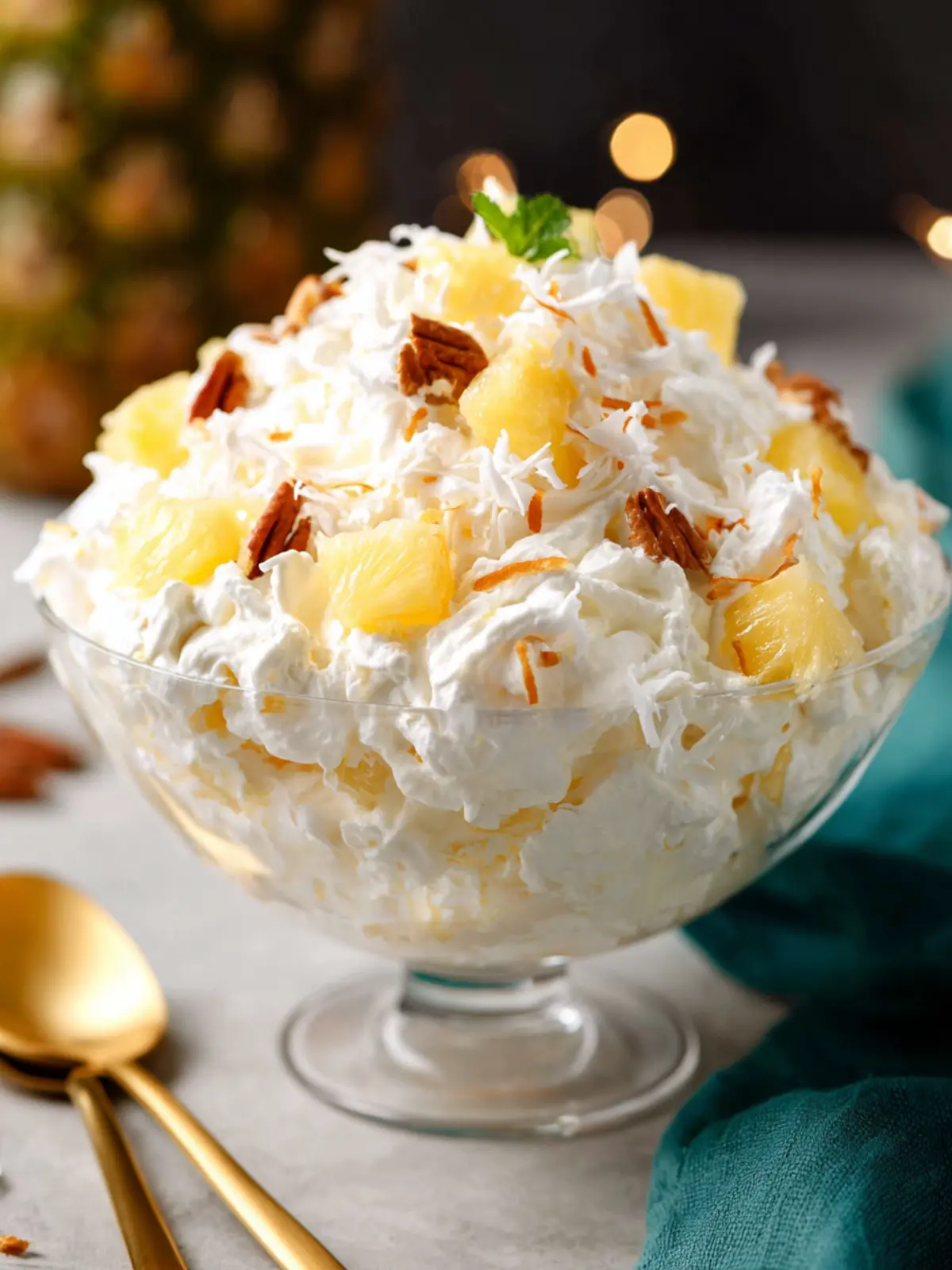 Light and Refreshing: The creamy base, mixed with sweet pineapple and crunchy pecans, creates a fluffy texture that dances on your palate. It’s the perfect balance of rich and refreshing!
