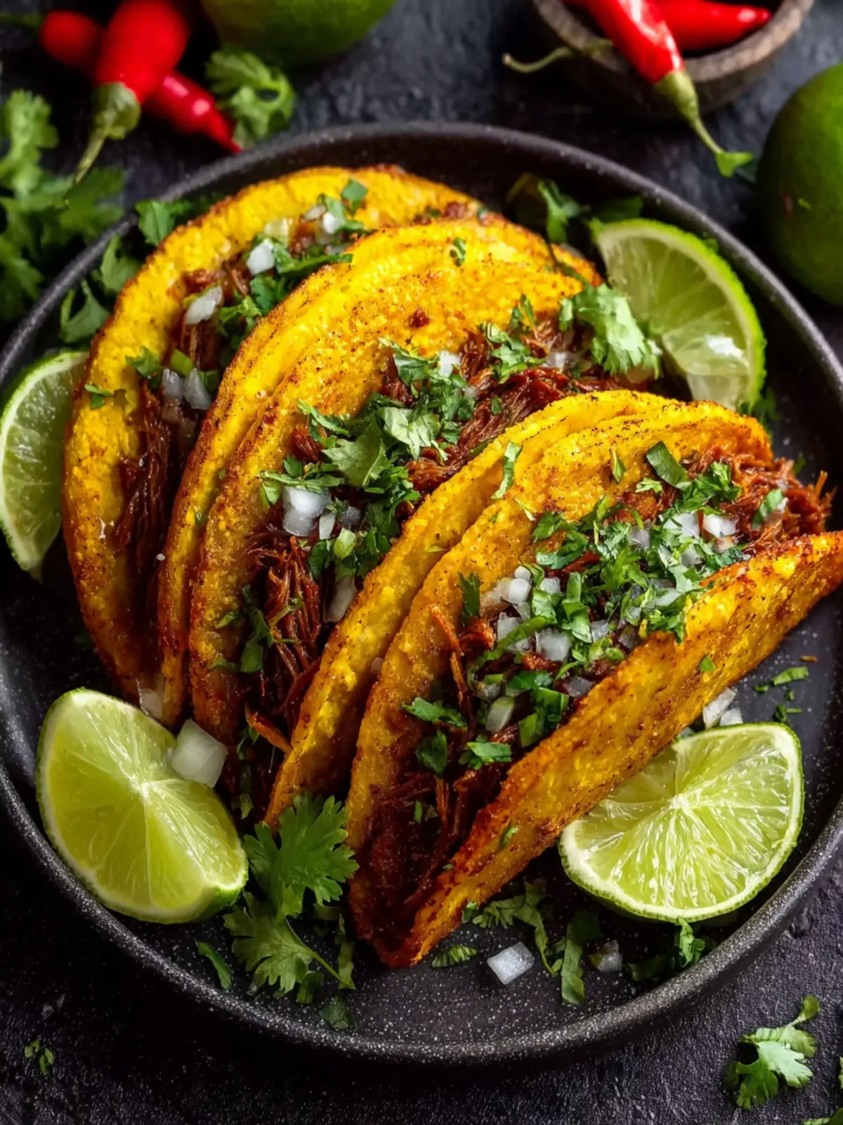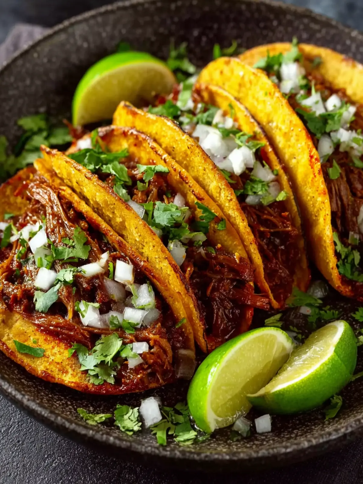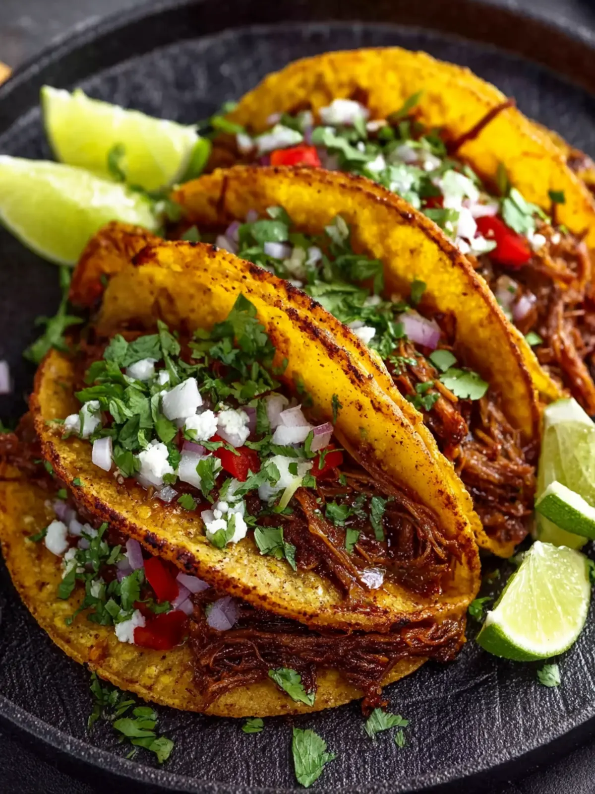 Authentic and flavorful birria tacos made with slow-cooked beef and a rich chile sauce.