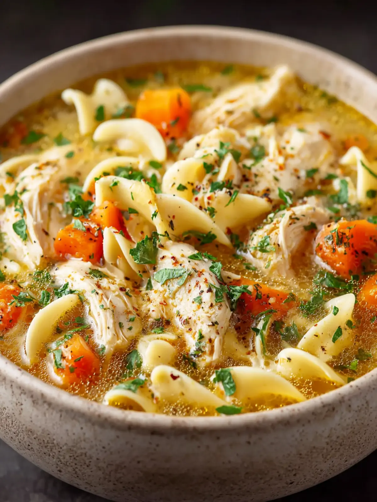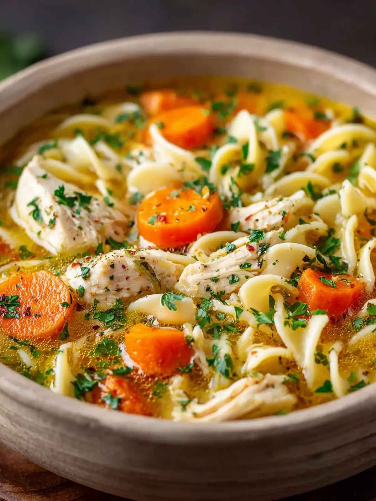 A hearty and comforting slow cooker chicken noodle soup made with tender chicken, vegetables, and egg noodles.