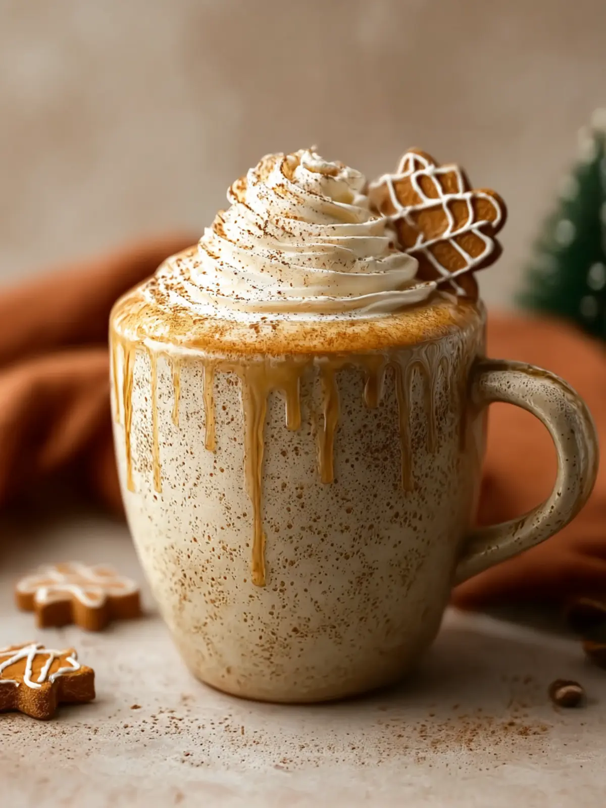 Enjoy a cozy homemade gingerbread latte with warm spices and a creamy foam topping.