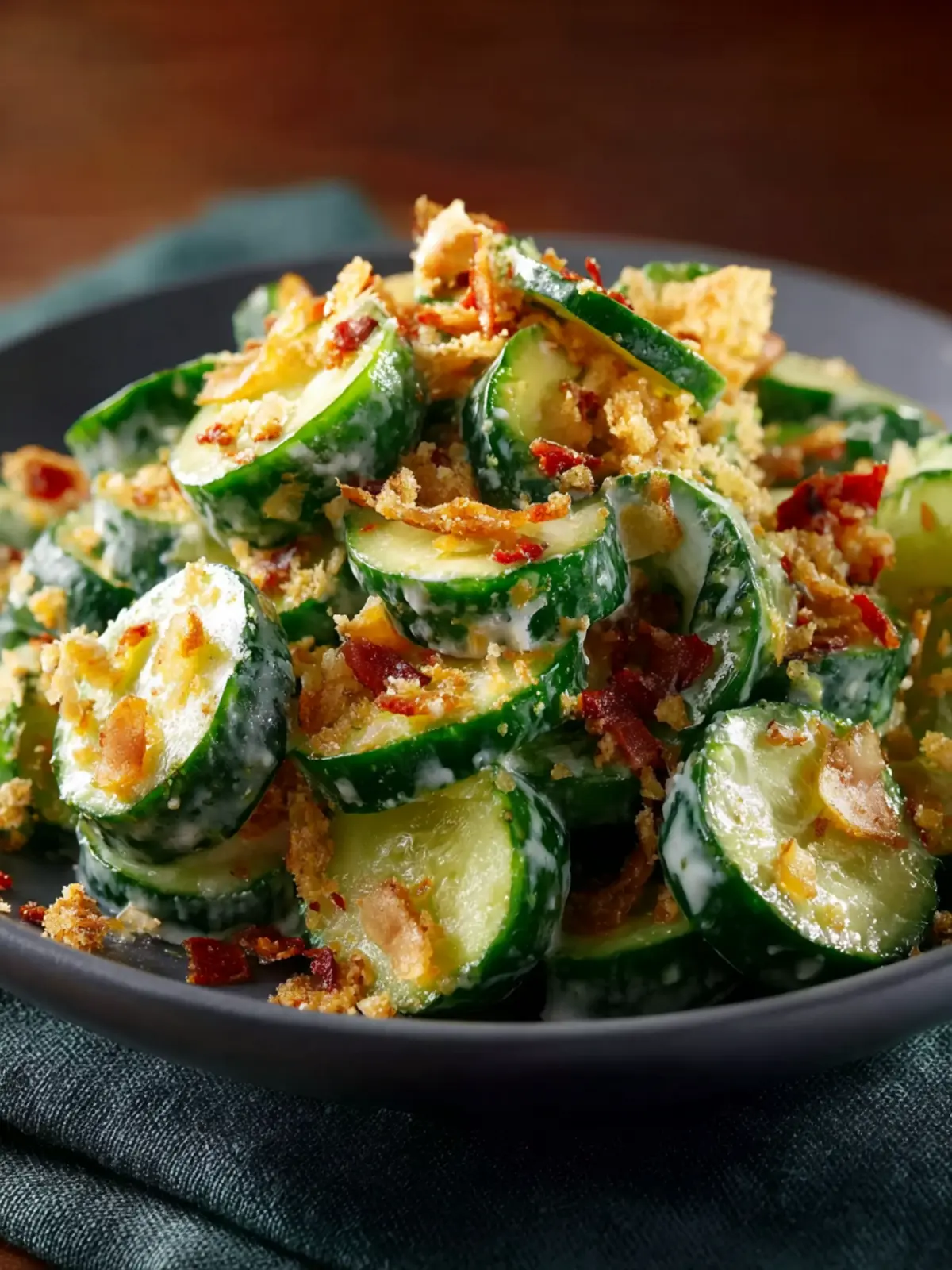 This salad combines the refreshing crispness of cucumbers with the savory goodness of cream cheese and crispy bacon. The kick of jalapenos adds just the right amount of heat, making each bite exciting. If you’re someone who loves a little spice in your life, this dish is tailor-made for your palate.