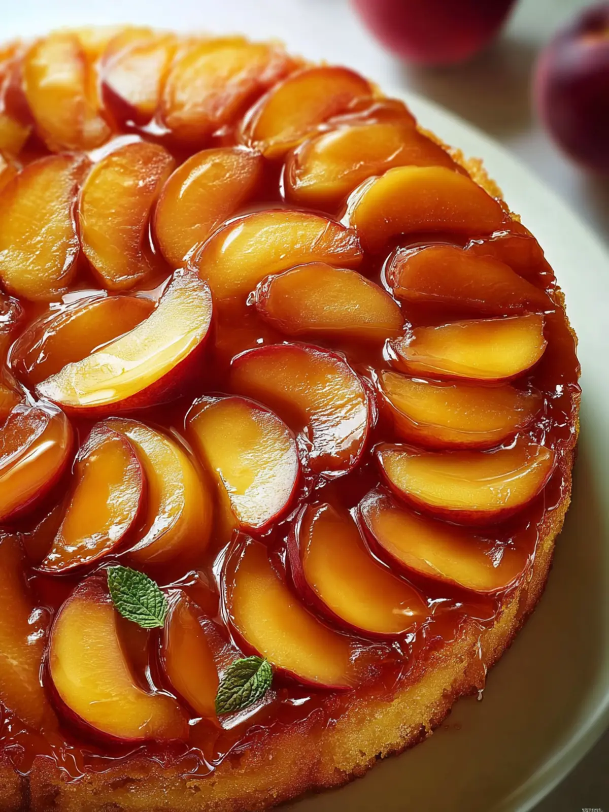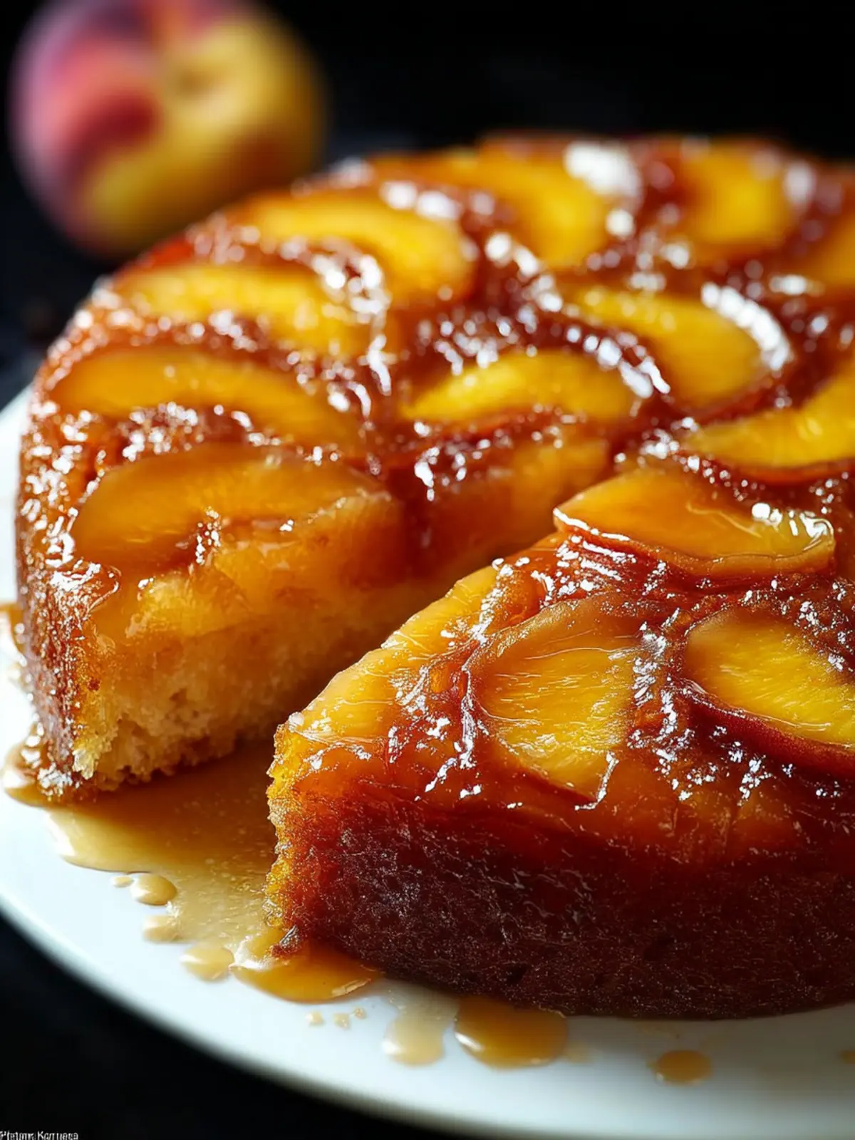 This recipe allows you to recreate those meaningful moments, combining tradition with your own personal touch. The simplicity of crafting the cake provides an almost meditative experience; the gentle mixing of ingredients feels like a dance, bringing together old memories and new inspirations. Each layer—soft, buttery cake topped with golden caramelized peaches—marries nostalgia with creativity, making every bite a journey back to simpler times.