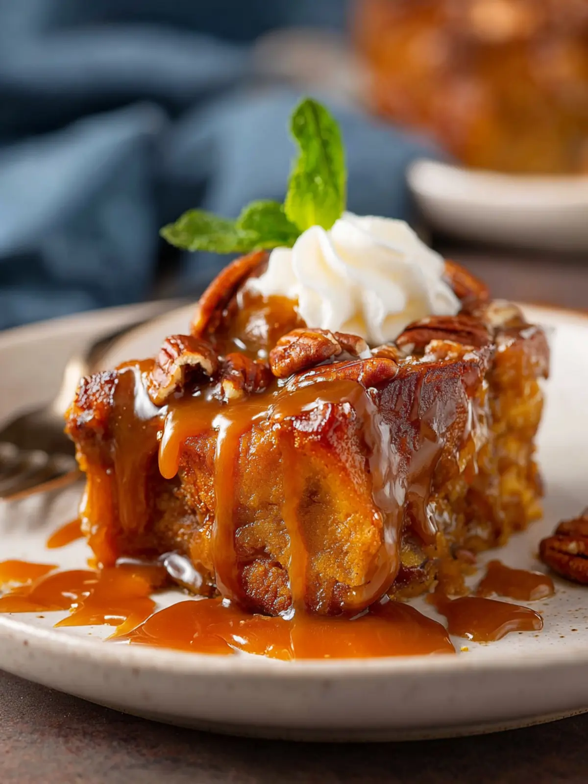 To enhance the presentation and flavor, consider drizzling a caramel sauce or serving with whipped cream. A sprinkle of chopped pecans or walnuts adds a delightful crunch that complements the softness of the pudding.