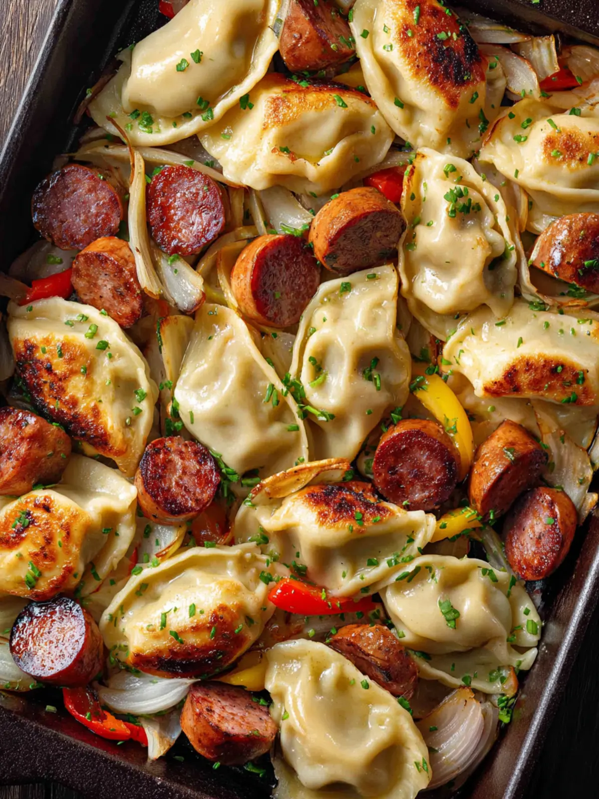 Vegetables: Colorful bell peppers and onions not only enhance the nutritional value but also contribute sweetness and crunch. They roast wonderfully alongside the pierogies and kielbasa, absorbing those mouthwatering flavors.