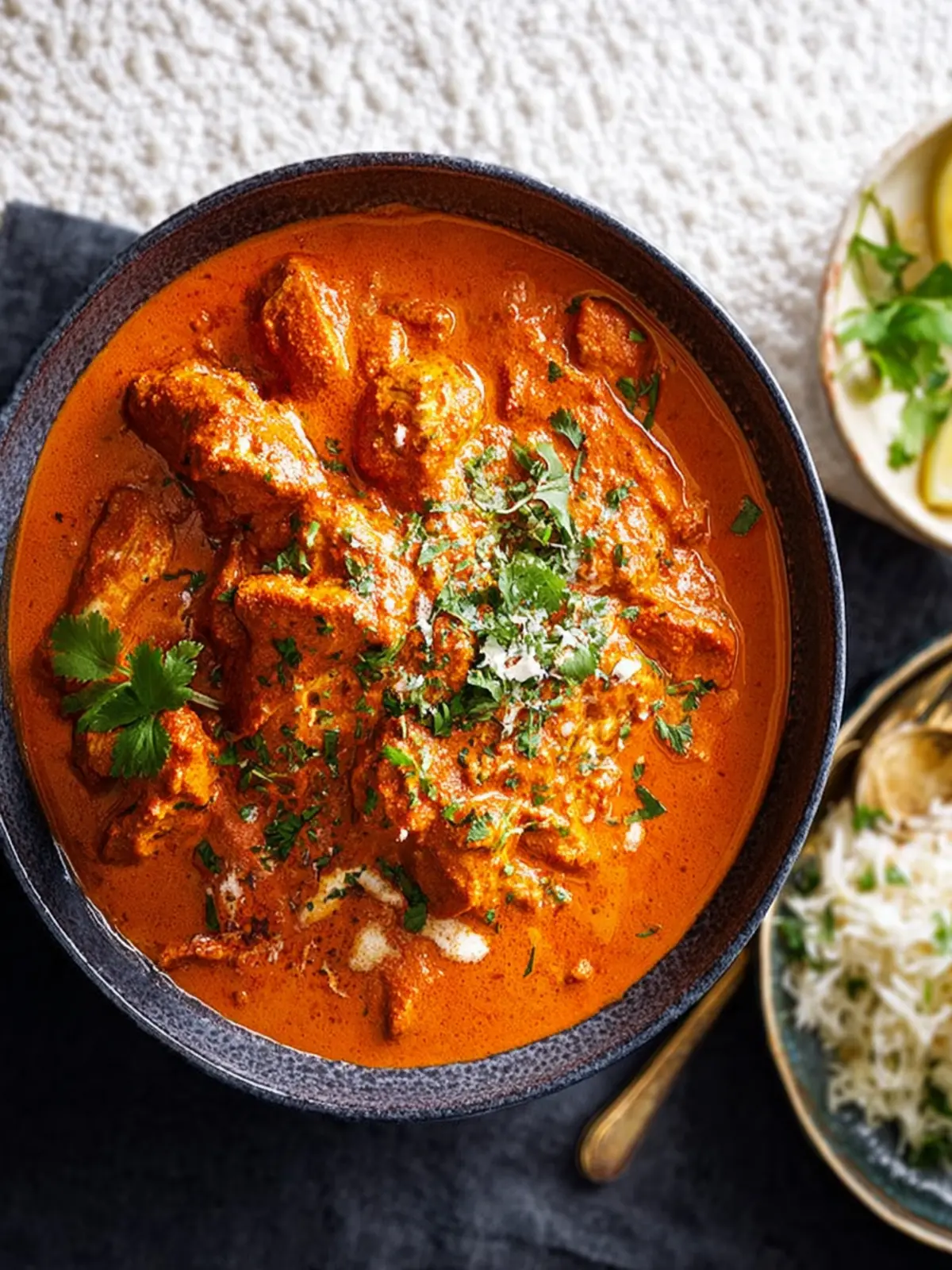 A delicious slow-cooked chicken curry with rich flavors and aromatic spices.