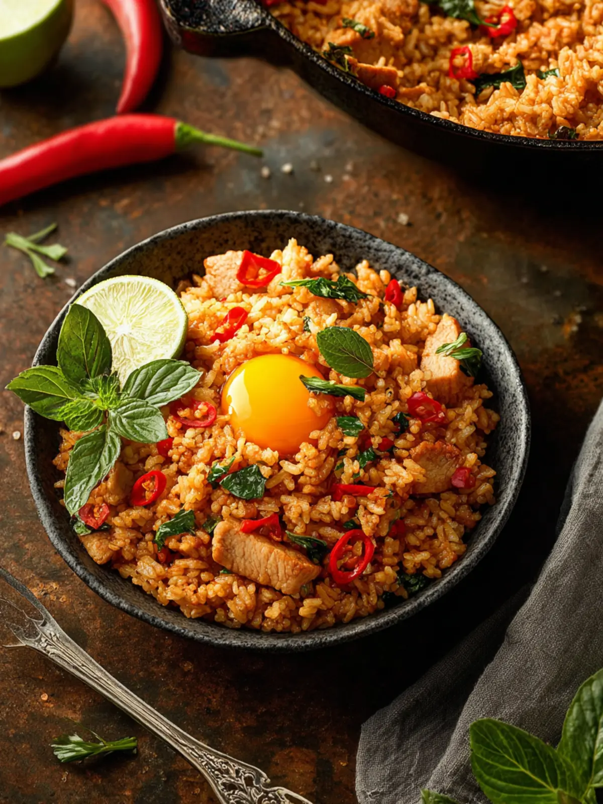 Fried rice is more than a culinary staple in Thailand; it’s a symbol of innovation and resourcefulness. Historically, this dish was a practical solution for transforming leftover rice into something spectacular. Street vendors are known for their unique fried rice variations, often incorporating seasonal ingredients and regional spices. One of the key elements of Thai Red Curry Fried Rice is its vibrant color and spicy kick, which comes from the red curry paste—a blend of red chilies, lemongrass, garlic, and galangal that captures the essence of Thai cooking.