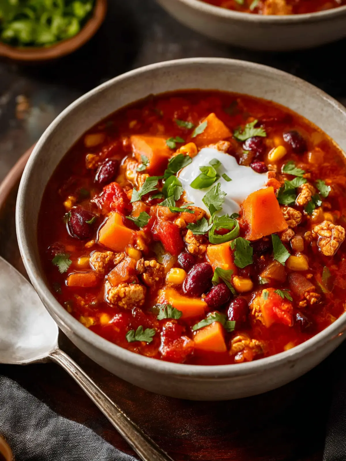 There are countless ways to elevate the flavors of your turkey sweet potato chili! Think about adding: