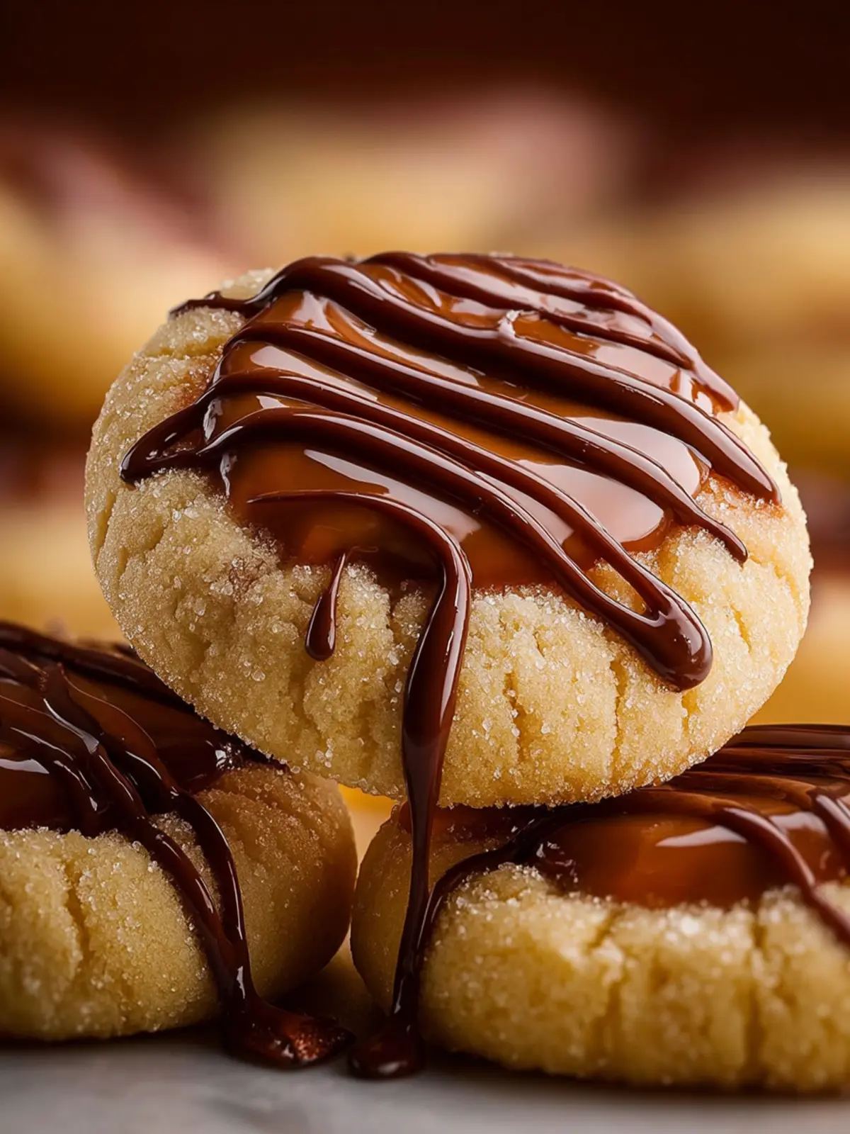 These cookies masterfully combine crispy edges with a soft, chewy center. The thumbprint is the perfect little well that holds a blend of caramel and chocolate ganache, creating a rich and satisfying treat. Whether you’re sharing them at a gathering or enjoying them quietly with a cup of coffee at home, these cookies are bound to impress.